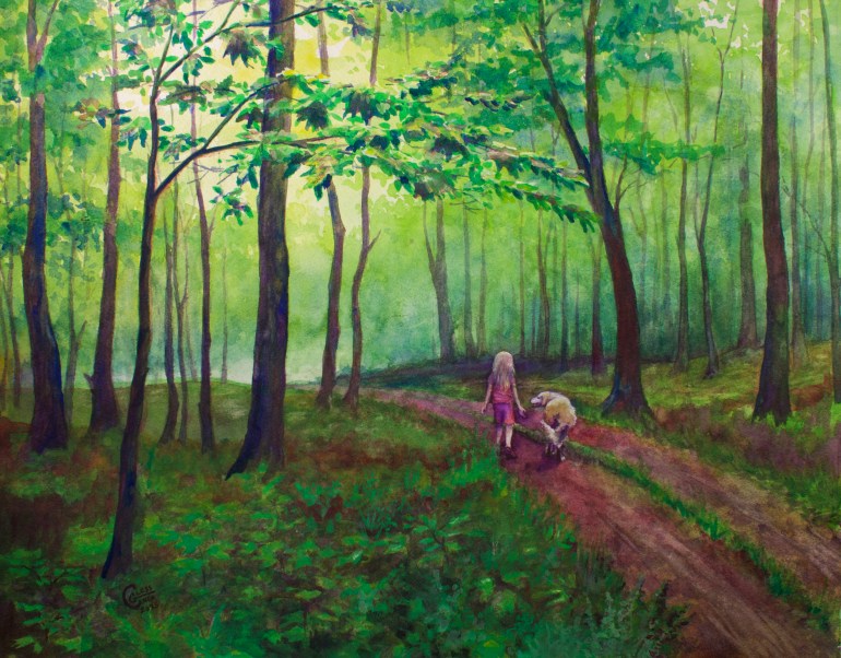 The conclusion I’ve drawn from this research and testing is that there’s not a great way to make non-granulating paint granulate or even appear to granulate. However, a spritz with rubbing alcohol adds impactfull texture and seems to be a good DIY version of the Schmincke spray. Based on this testing, I used alcohol to develop the texture in the road in the painting below. Iron-based pigments like Mars Black and Prussian Blue flocculate more easily, so these might produce even more dramatic effects when used with rubbing alcohol.